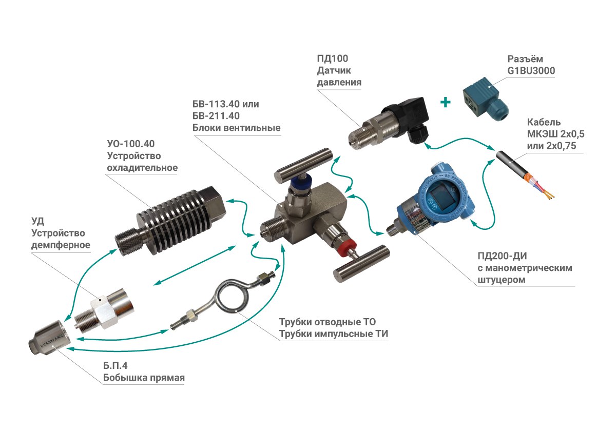 БВ-113 и БВ-211 – вентильные блоки для обеспечения изоляции преобразователя от техпроцесса и возможностью дренажа рабочей среды для упрощения замены преобразователя в условиях эксплуатации.