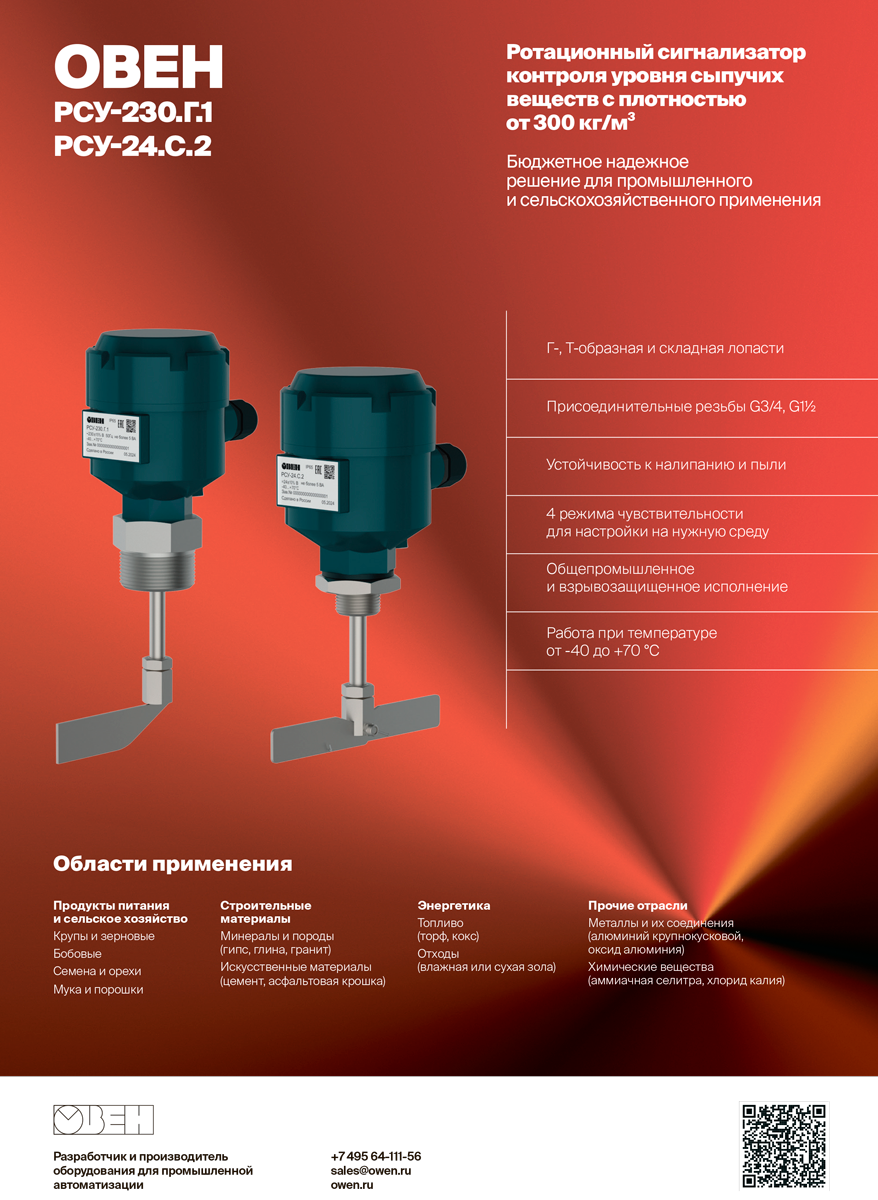Листовка Ротационный сигнализатор уровня сыпучих веществ РСУ