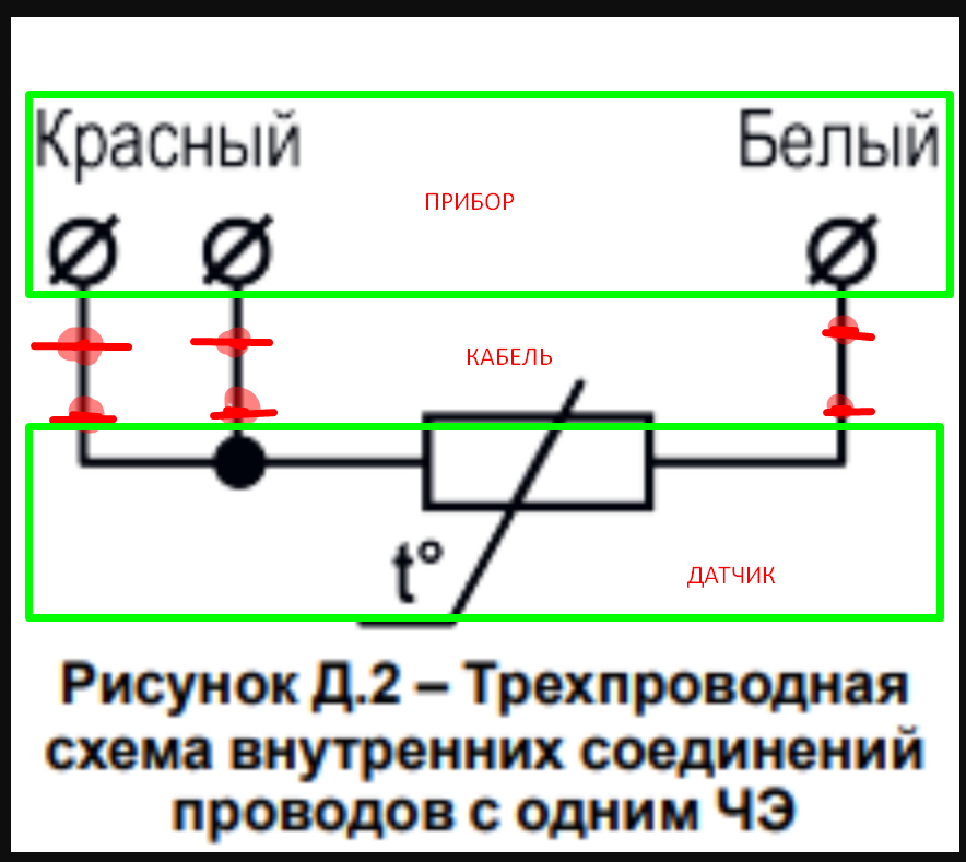 где сделана общая точка - на датчике или на приборе?Датчик подсоединён по 3-й проводной схеме