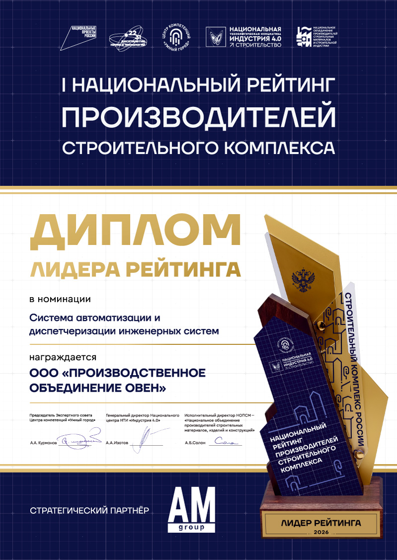 Высокая позиция ОВЕН в рейтинге – результат многолетней работы по проектированию и производству оборудования для автоматизации, которое позволяет реализовывать проекты любой сложности и масштаба.