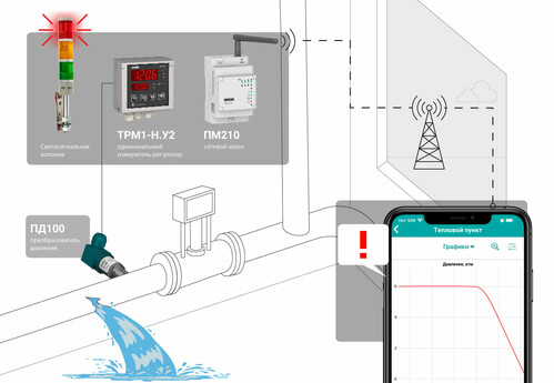 Необходимо передавать данные об аварийно-низком давлении контура отопления на телефон главному инженеру обслуживающей организации. Это позволит немедленно получить информацию об опасном событии на объекте и принять необходимые меры по диагностике причин и/или устранению последствий аварии, чтобы сохранить подачу тепла потребителям.
