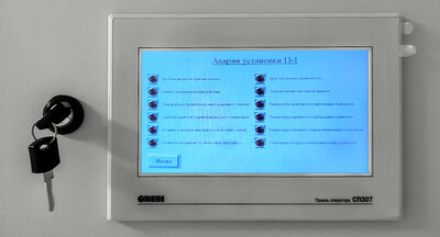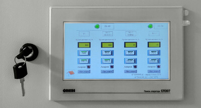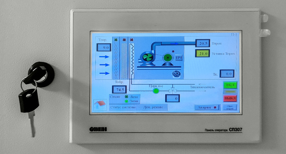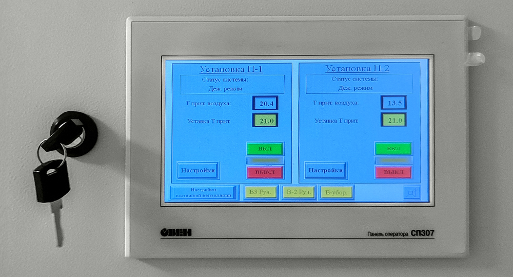 Управление вентиляционными установками осуществляется дистанционно из цехов с сенсорных панелей оператора ОВЕН СП307-Б.