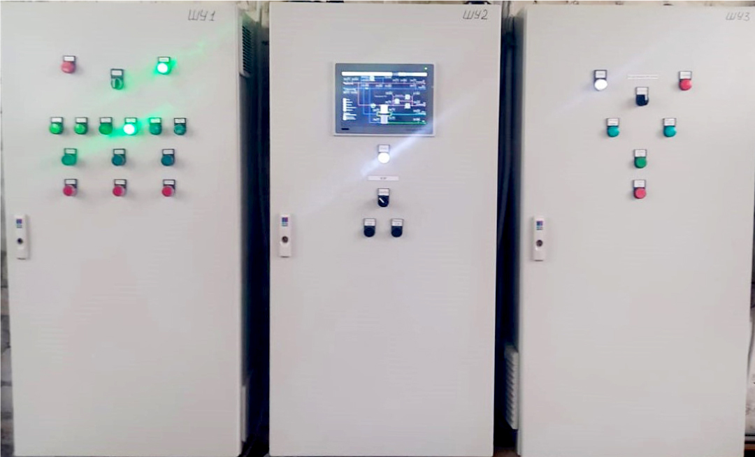 В шкафу управления и диспетчеризации установлены основной контроллер и средство визуализации. С их помощью можно следить за работой ЦТП и управлять технологическими процессами. С помощью контроллера также организован мониторинг доступа в помещение, контроль протечек воды, передача информации по основному и резервному каналам.