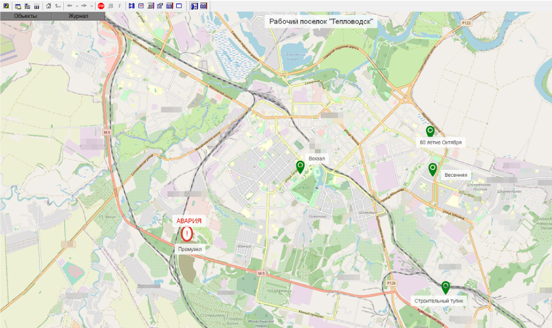 На экране у оператора диспетчерского пункта отображаются все теплопункты с привязкой к карте местности (рис. 3). В планах по развитию проекта – наблюдение за перемещением аварийной группы в режиме реального времени.