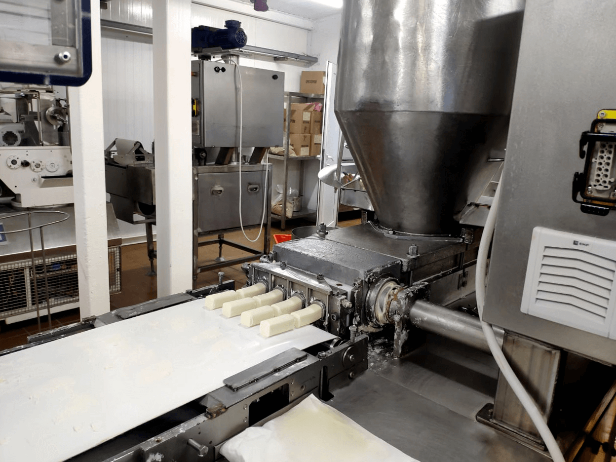 В формовочном цехе творожная масса превращается в сырок в глазури, упакованный в пленку и коробку. Персонал практически не участвует в работе формовочной линии, контролируя продукт только на этапе закладки творожной массы в воронку дозатора и на выходе перед укладкой в холодильник полностью готового к продаже сырка.