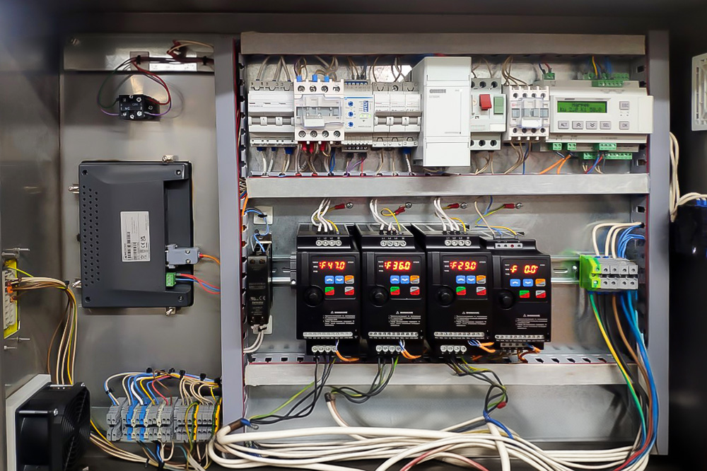 Команды оператора поступают на ПР с панели управления. ПР200 контролирует напряжение сети по реле контроля фаз и температуру воды, циркулирующей в системе, с помощью термосопротивления ОВЕН ДТС, а также управляет двигателями механизмов формовочной машины.