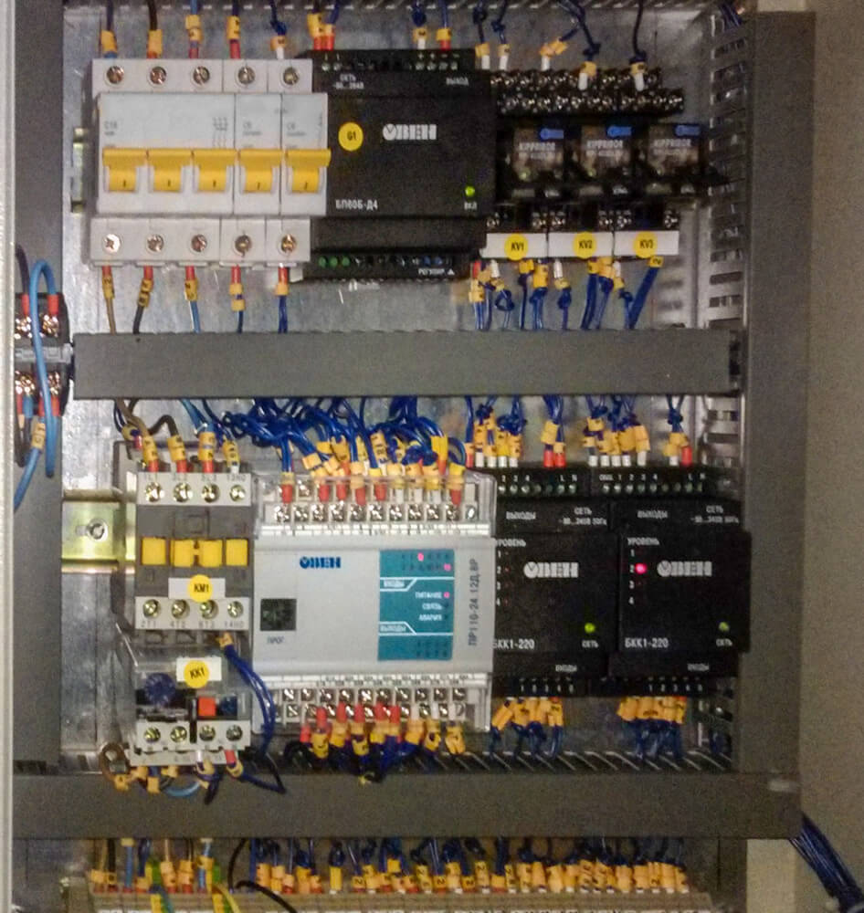 А.Т.: Да, мы давно сотрудничаем с ОВЕН. Начинали с регуляторов ТРМ24, программируемых реле. Делали на них шкафы управления для завода «Смычка» - это сепараторные линии. Регуляторы и реле нам очень понравились. На ОВЕН ПР110 в свое время даже модернизировали систему управления фасовочным автоматом на «Мозырских молочных продуктах», где вышел из строя контроллер FESTO. Мы заменили его на российское оборудование с установленной программой работы фасовочного автомата в соответствии циклограммой работы автомата и все прекрасно заработало.