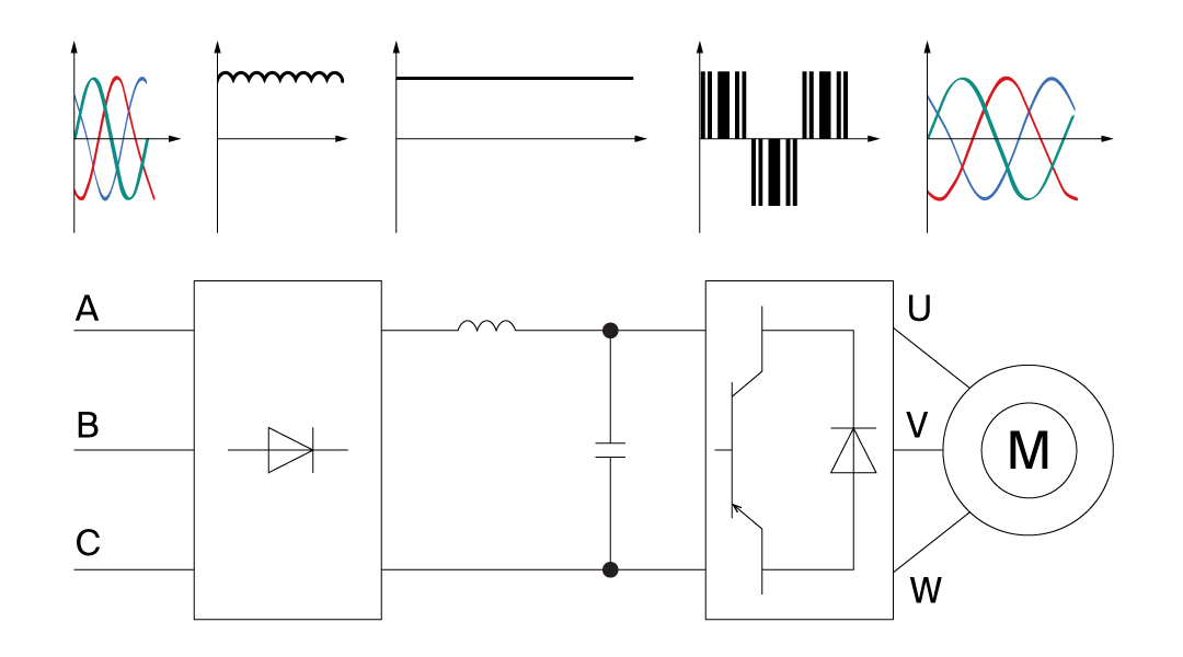 Две самые распространенные схемы преобразователей частоты – с непосредственной связью с сетью и звеном постоянного тока.