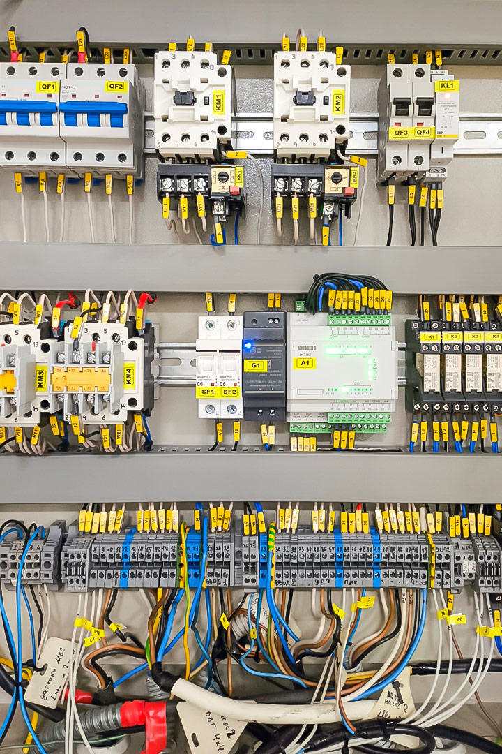 Для управления сетевыми насосами были собраны шкафы на базе программируемого реле ОВЕН ПР100. Для плавного пуска и продления срока службы насосов используются преобразователи частоты. Реле также контролирует состояние фильтров, своевременно оповещая о необходимости обслуживания.