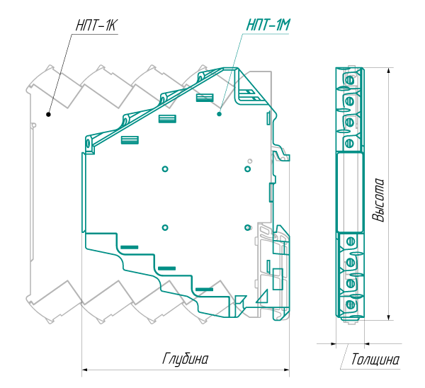 Корпус стал толще, чем у НПТ-1К и составил 12 мм, однако, увеличив толщину, мы смогли уменьшить длину и высоту, что позволит устанавливать их на DIN-рейку в шкафы меньшей глубины и не будет мешать установке других устройств (рис. 4).