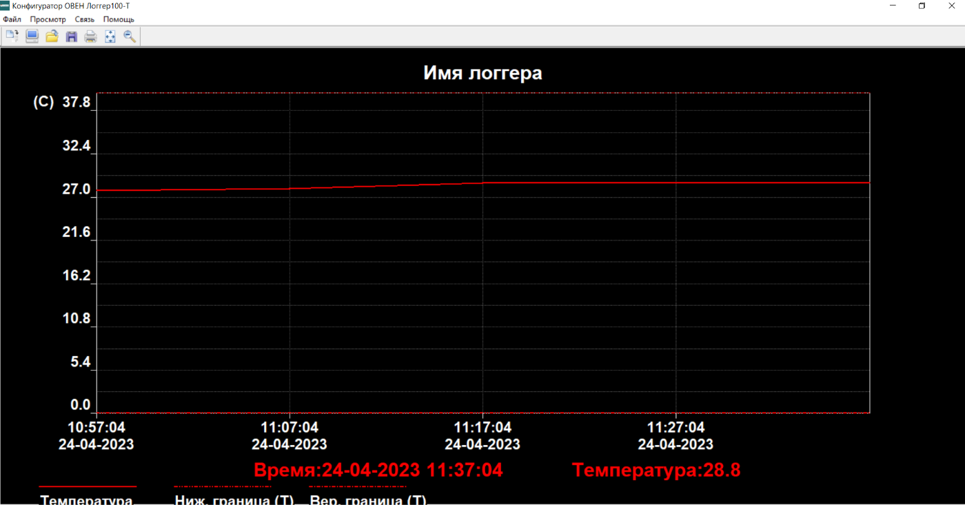 Графики полученных данных выводятся в плоскости координат: по оси Х отложены «Дата/Время», по оси Y – «Температура».