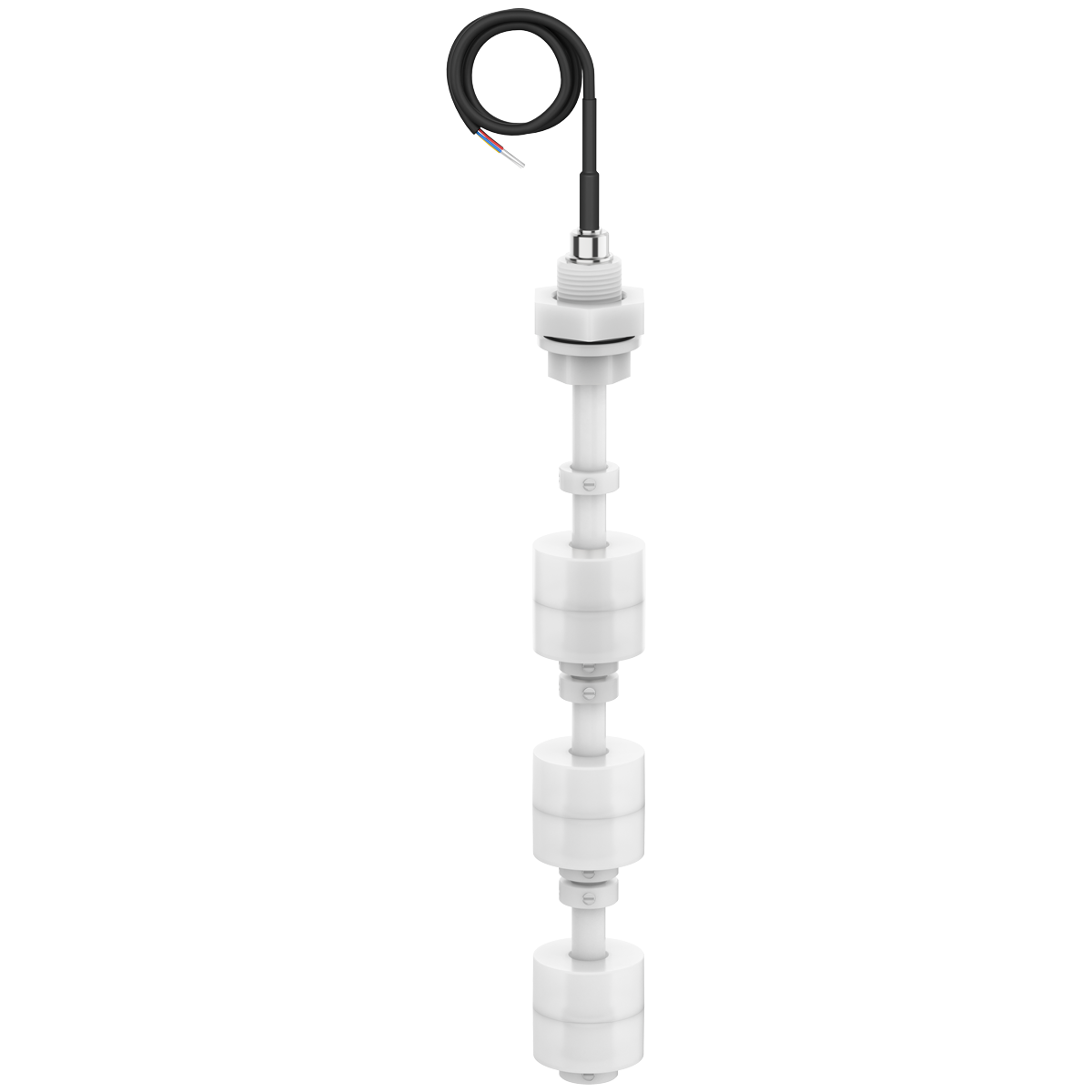 Датчик применяется для сигнализации от 1 до 3 уровней уровня жидкостей, совместимых по своему химическому составу с материалами PVDF, PFA, FFKM.