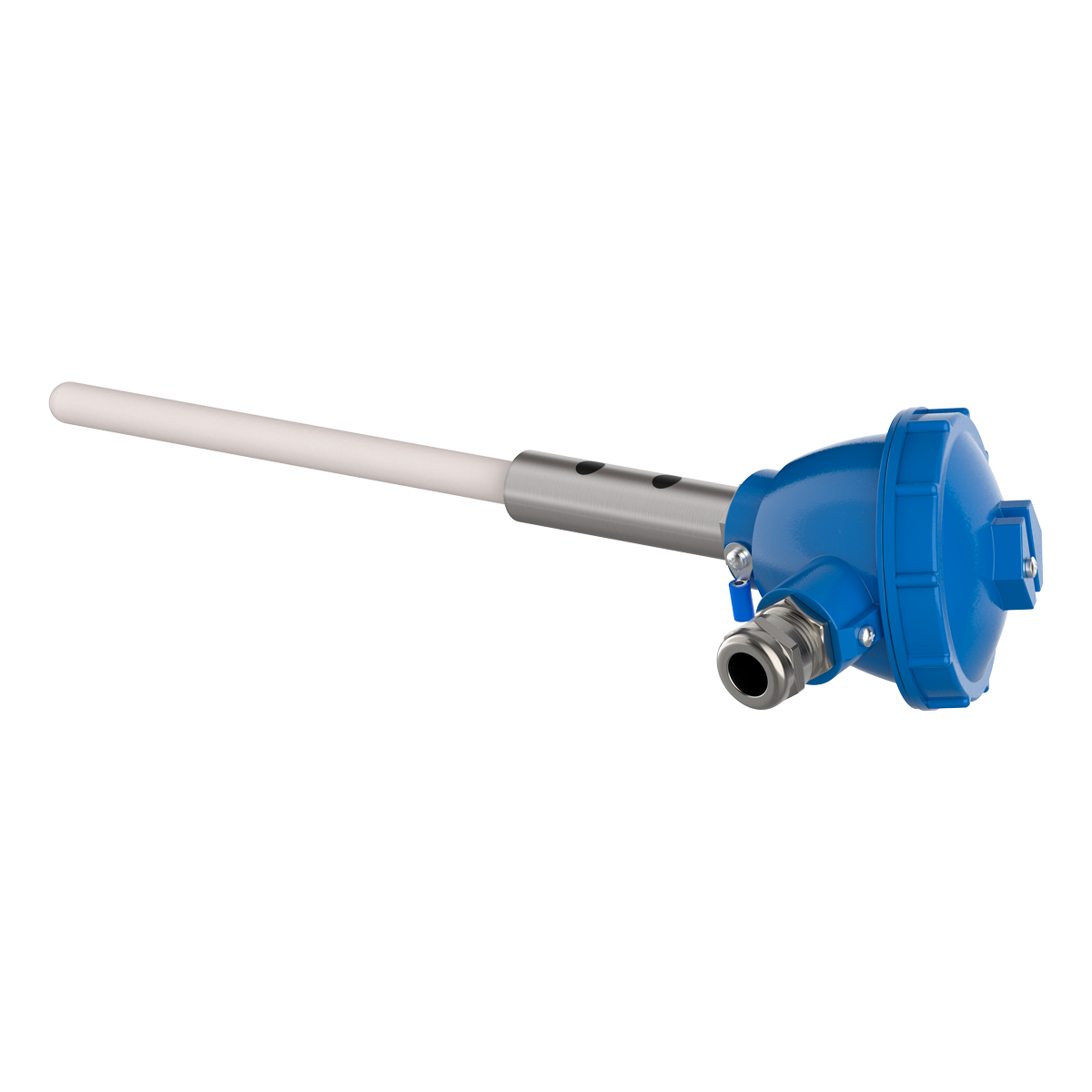 Это означает, что изготовлению и поставке подлежит термопара «хромель-алюмель», материал защитной арматуры – жаростойкий сплав ХН45Ю, с изолированным рабочим спаем, диаметром КТМС 4,5 мм, с металлической коммутационной головкой, длиной монтажной части 500 мм, в корпусе 125, класс точности 1,0 %, со встроенным нормирующим преобразователем НПТ-3, диапазон преобразования температур: 0…1100 °С.