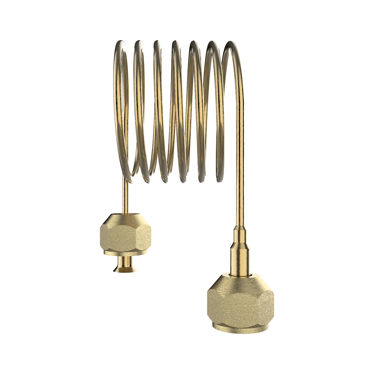 С каждого конца трубка имеет развальцовку и подвижную гайку с внутренней присоединительной резьбой SAE¼”. Для подключения капиллярной трубки к датчику и к процессу необходимо использовать латунный переходник УПЛ с резьбой SAE¼” на G1/4” или G1/2”.