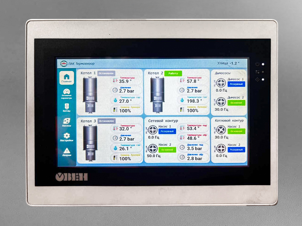 Для реализации этого проекта мы вновь выбрали оборудование ОВЕН. Применение полного спектра продукции от одного проверенного производителя — от программируемых реле и датчиков до сенсорного панельного контроллера — обеспечило безупречную совместимость, удобство интеграции и высокую надежность всей системы. Особенно приятно, что наше многолетнее партнерство с ОВЕН позволило нам полностью автоматизировать механические советские котлы КВМ, вдохнув в это устаревшее, но надежное оборудование новую цифровую жизнь и современный уровень эффективности.