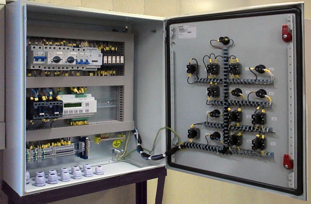 Также использовано светотехническое оборудование MEYERTEC: клеммы серии MTU, сигнальные лампы серии MT2, переключатели, кнопки, блокконтакты серии MTB2.