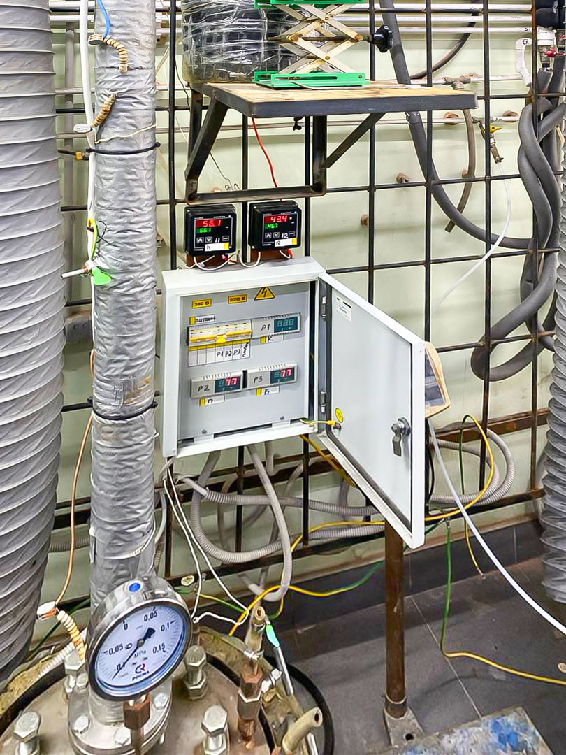 В качестве базового оборудования на объекте использовался измеритель-регулятор ОВЕН ТРМ200. Для передачи технологических параметров в настроенное облако OwenCloud был собран шкаф управления. К регулятору подключили сетевой шлюз ОВЕН ПВ210.