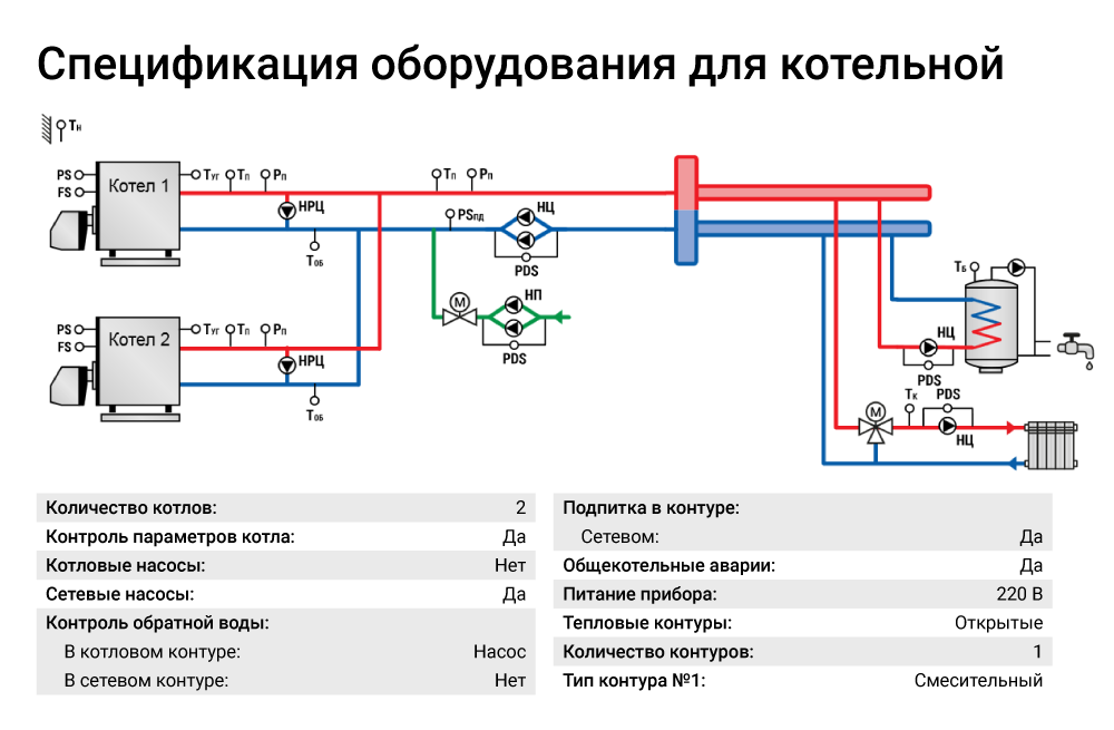 Для управления оборудованием котельной была выбрана линейка контроллеров с готовыми алгоритмами для автоматического управления ОВЕН КТР 121, в состав которой входят модификации: